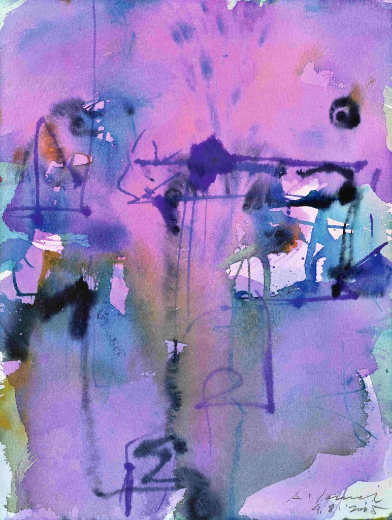 Prav v tem prostoru med zavestno odločitvijo in nepredvidenim nastajajo njegovi akvareli. Delujejo kot zapisi notranjega razpoloženja, brez poudarjene pripovedi, zadržani in zgoščeni. Njihova svetloba ne izhaja iz zunanjega učinka, temveč iz notranje zgradbe slike.